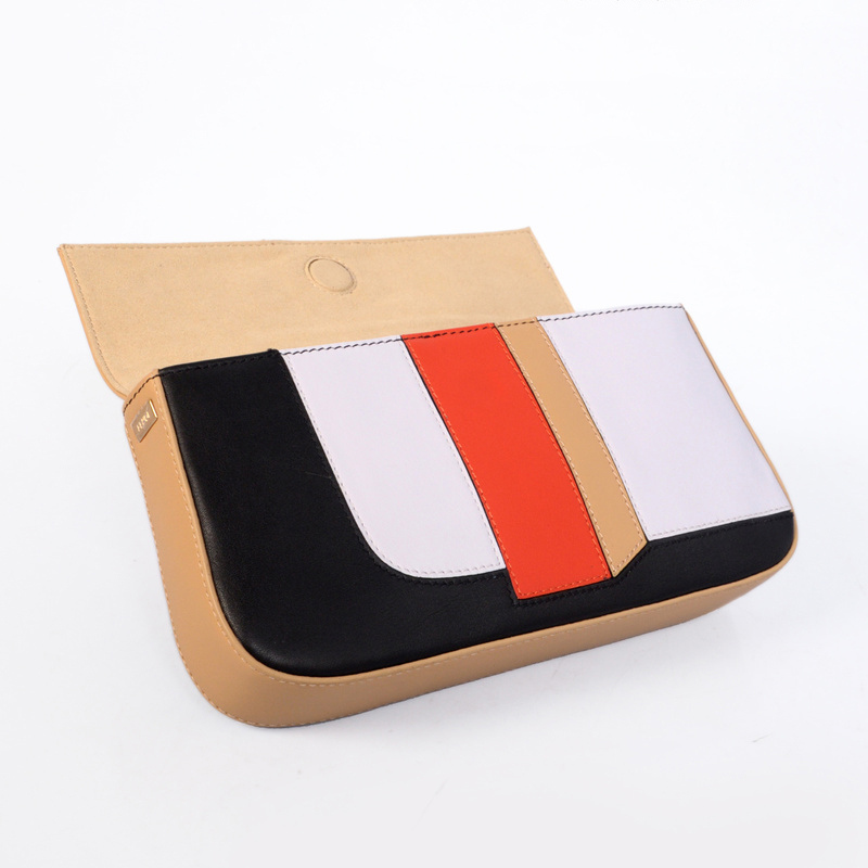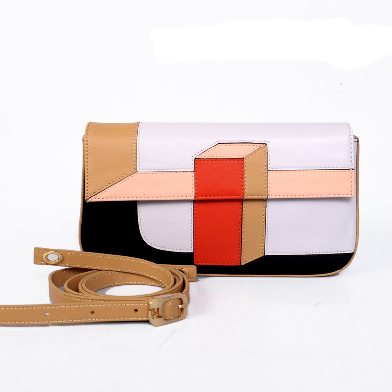 The Cikuan legendary handbags colorful logo top with slender metal band,, geometric three-dimensional original leather multicolor fight the stitching configure shoulder handbags, the effect is perfect.