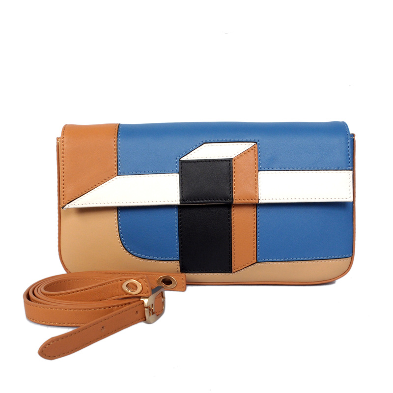 The Cikuan legendary handbags colorful logo top with slender metal band,, geometric three-dimensional original leather multicolor fight the stitching configure shoulder handbags, the effect is perfect.