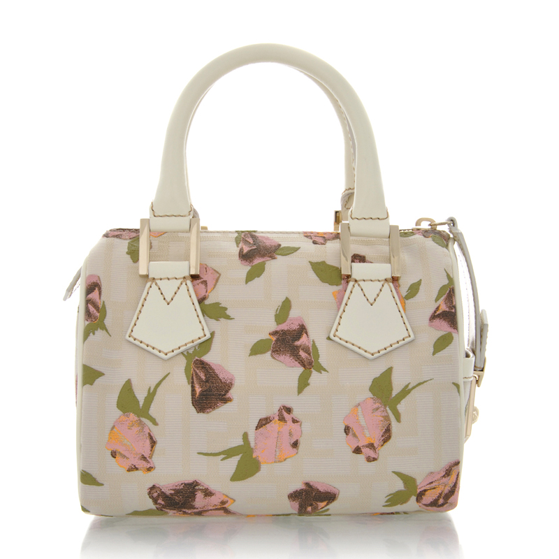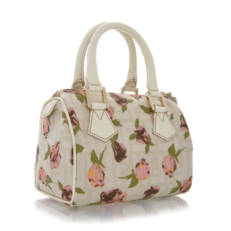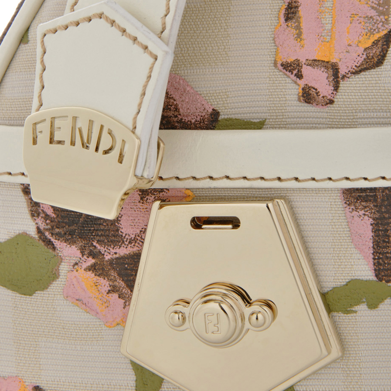 - The MINI ZUCCA Rose Cream Bauletto is made of Fendi's classic canvas in cream color, adorned with a charming rose pattern and has ivory leather details and gold tone hardware.