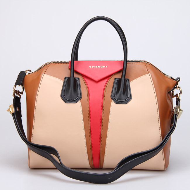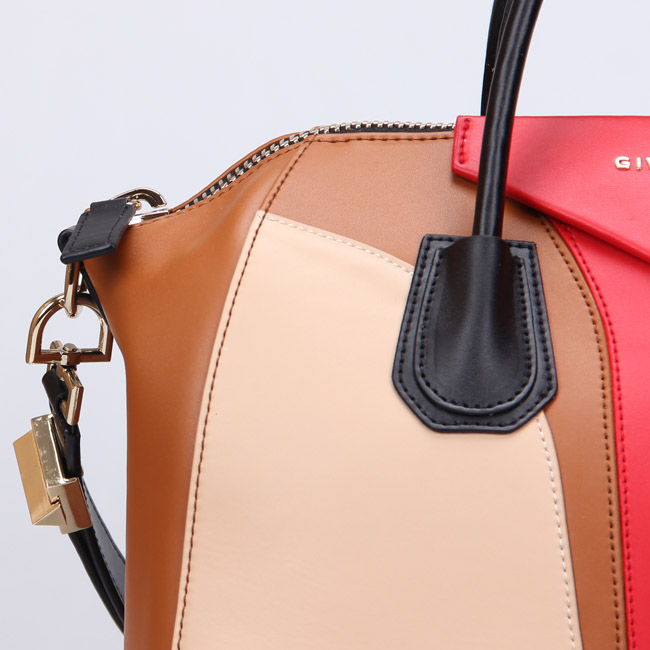 Givenchy Small Antigona Bag Smooth Leather 8887 Camel&Red