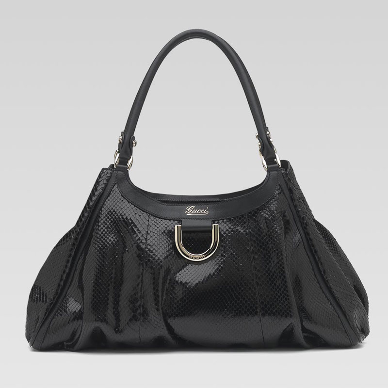 'D gold' large shoulder bag with D ring detail and gucci script logo.