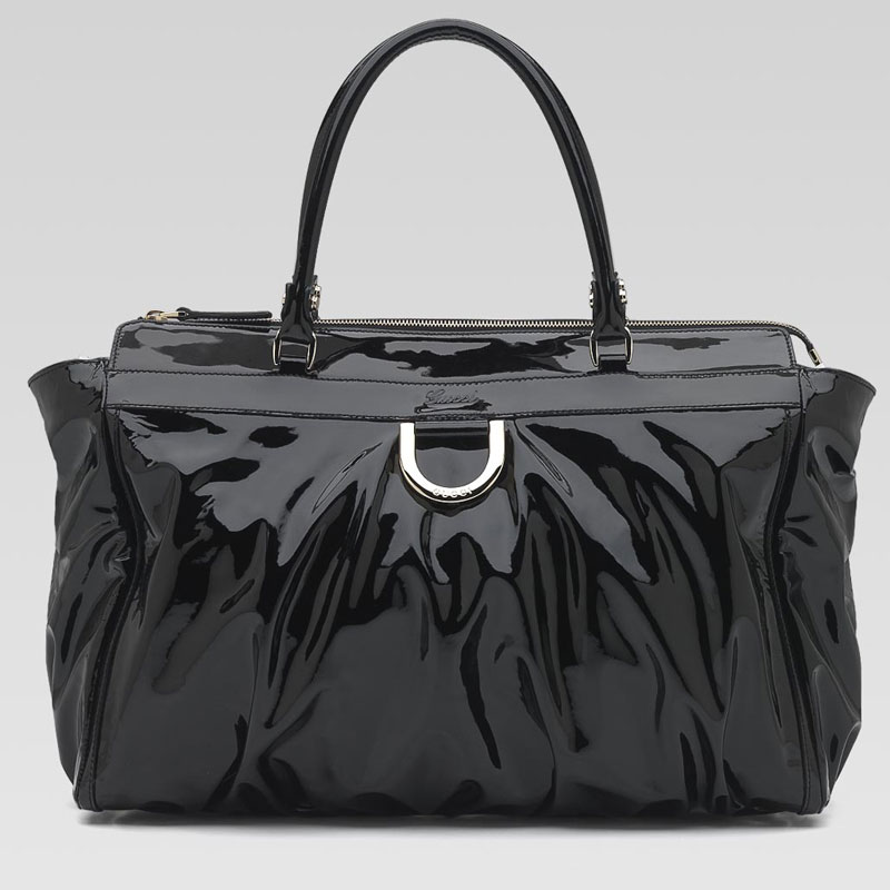 'D gold' large tote with D ring detail and gucci script logo.