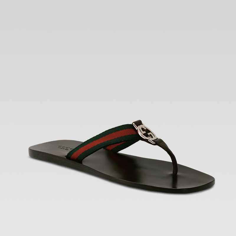 - green/red/green signature web with brown leather trim - light gold hardware - rubber sole