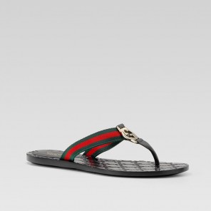 - green/red/green signature web with black leather trim - light gold hardware - rubber sole