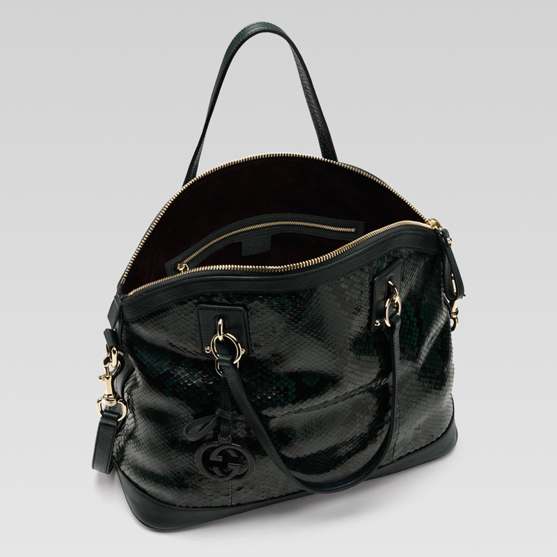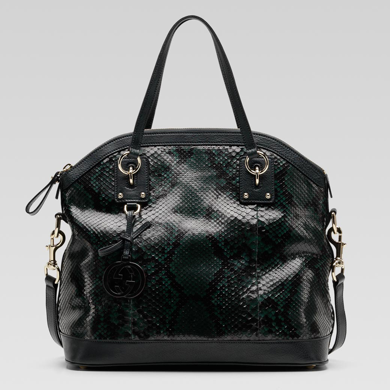 - dark green shaded python with dark green leather trim
