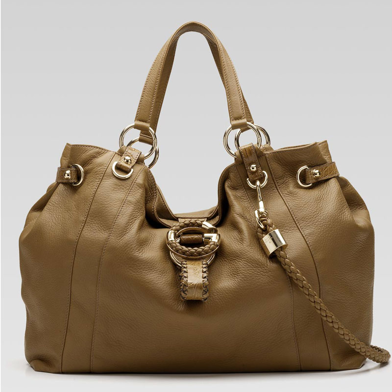 -double handles with 9.8" drop and detachable woven leather shoulder strap