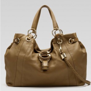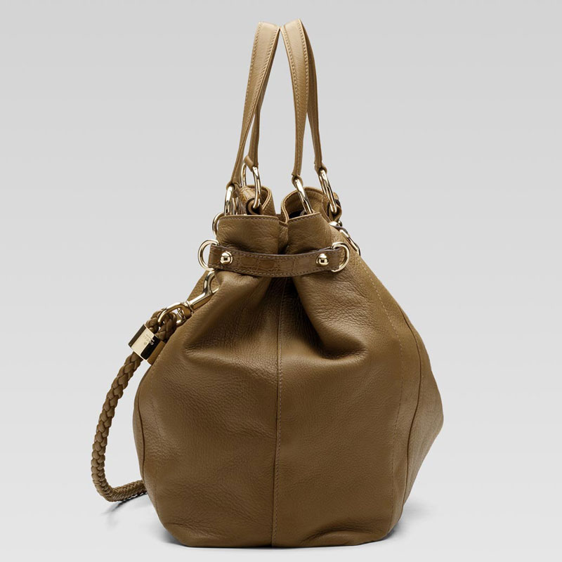 'G wave' large tote with hand stitching and G ornament with woven leather.