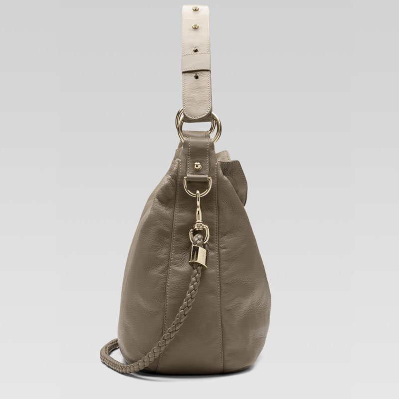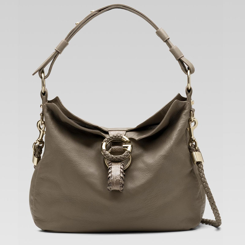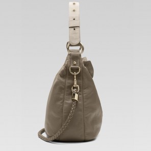 'G wave' medium shoulder bag with hand stitching and G ornament with woven leather.