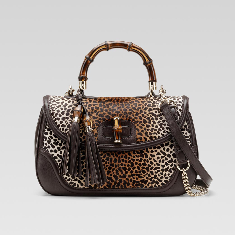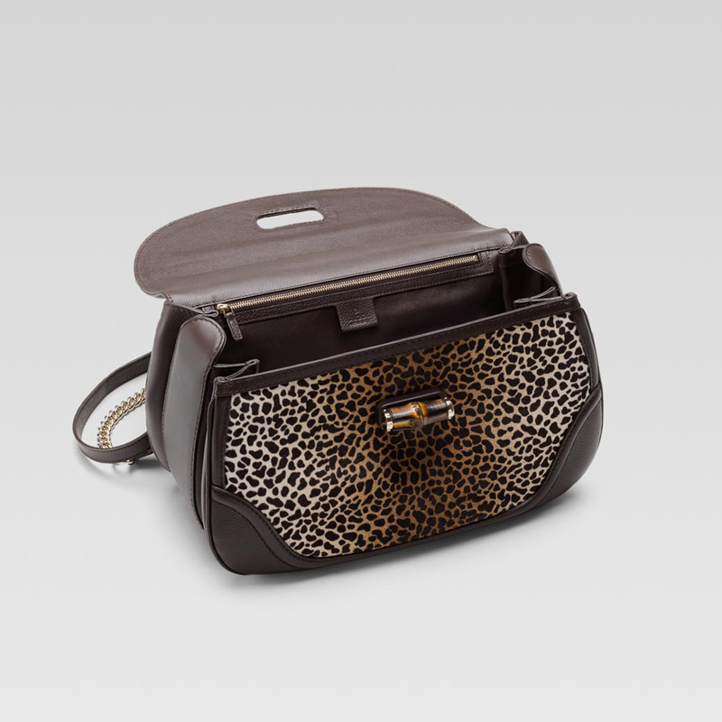 - animal print "pony" hair leather with brown leather trim
