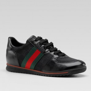 - black GG fabric with green/red/green web and black leather trim