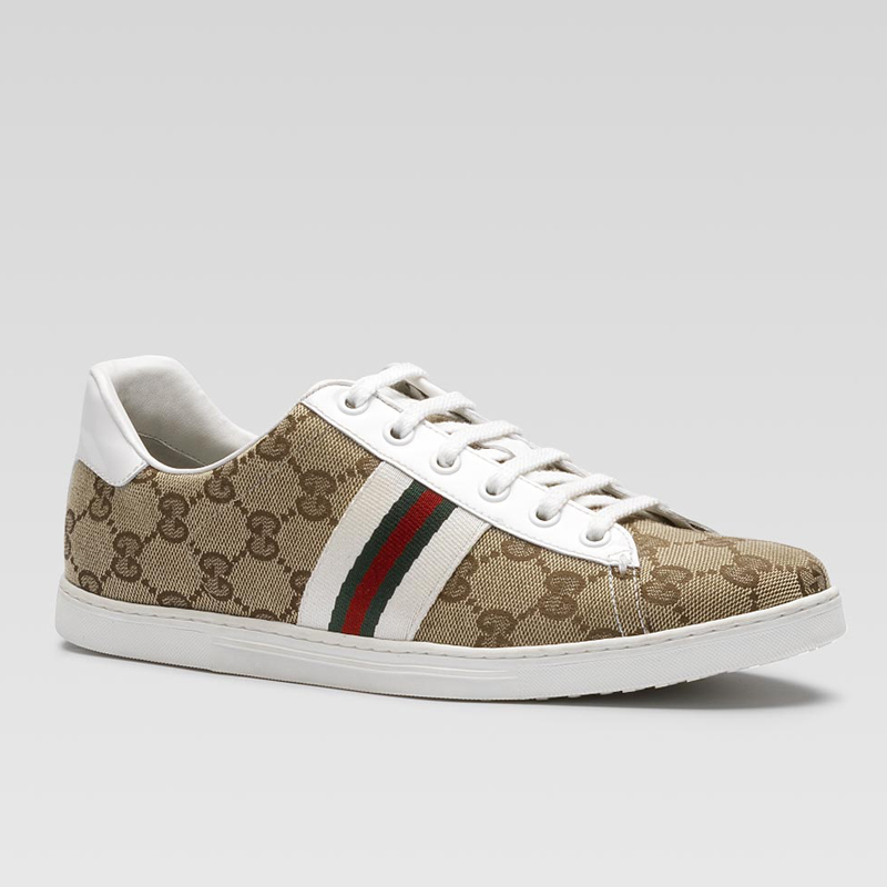 - beige/ebony GG fabric with green/red/green web white patent leather trim- rubber sole