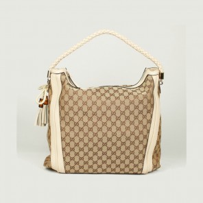 'bella' large hobo with woven leather bow, bamboo detail, and tassels.