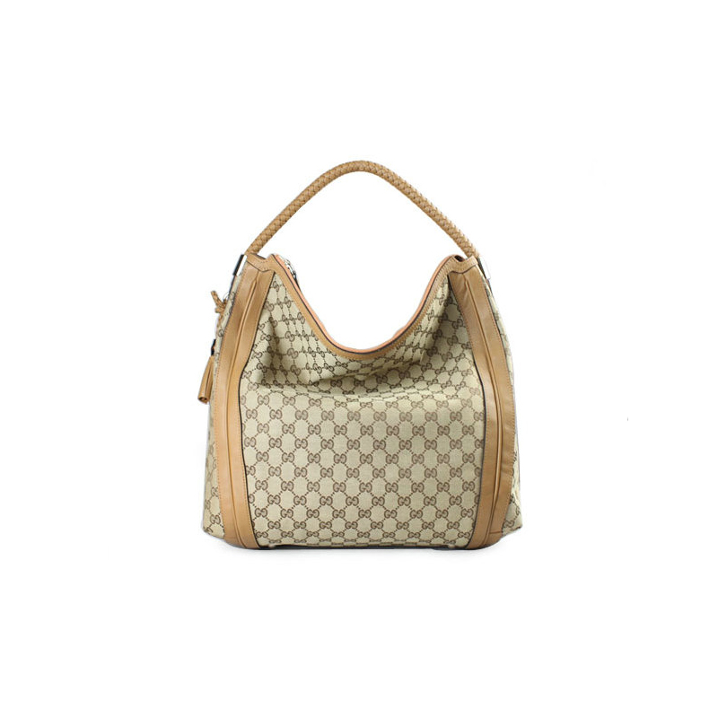 'bella' large hobo with woven leather bow, bamboo detail, and tassels.