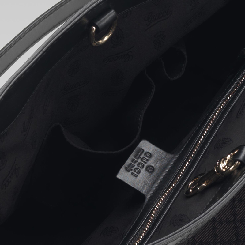 - black cotton jacquard lining with gucci crest pattern