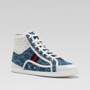 'cannes' high-top sneaker with eyelets and signature web detail.