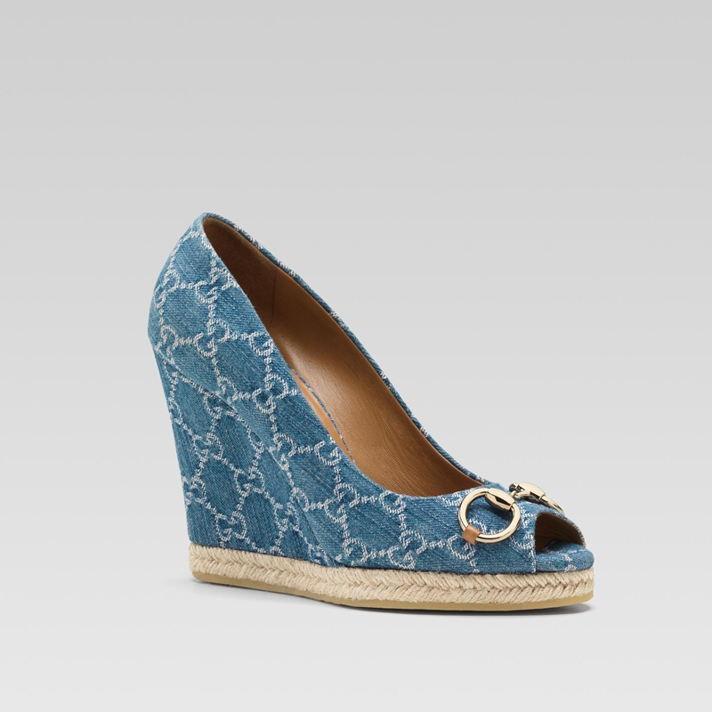 'charlotte' high heel open-toe espadrille wedge with horsebit detail.