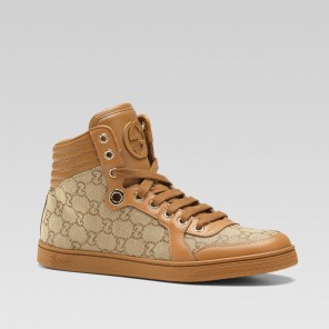 - website exclusive - beige/gold GG fabric with camel brown leather trim and camel brown rubber G - rubber sole