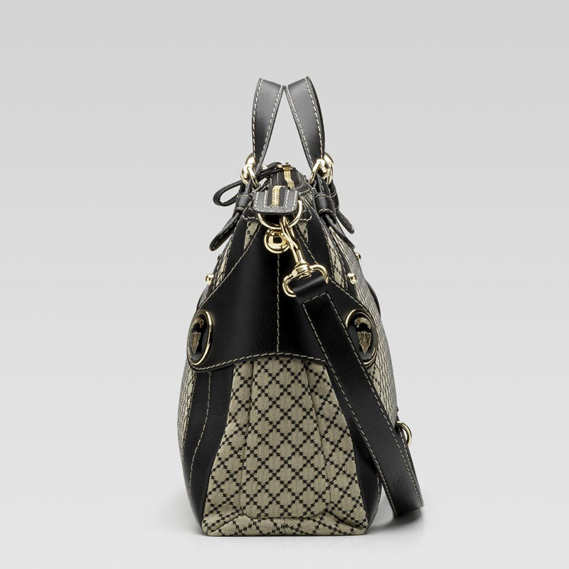 -beige/black diamond fabric with black leather trim