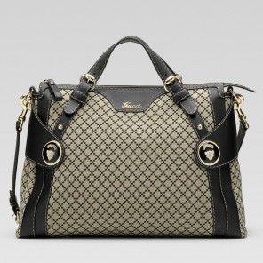 'crest boule' medium top handle bag with gucci crest detail and gucci script ornament.