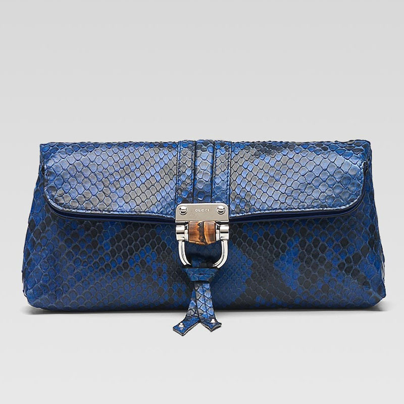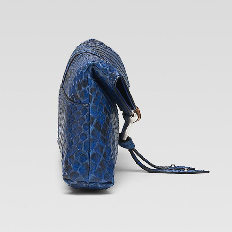 -blue python-nickel hardware-flap and zipper closure -inside pocket