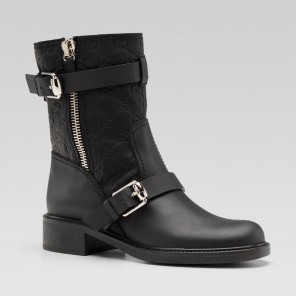 - black rubber guccissima leather and black rubberized leather - nickel hardware - side zip and buckle closure - rubber sole