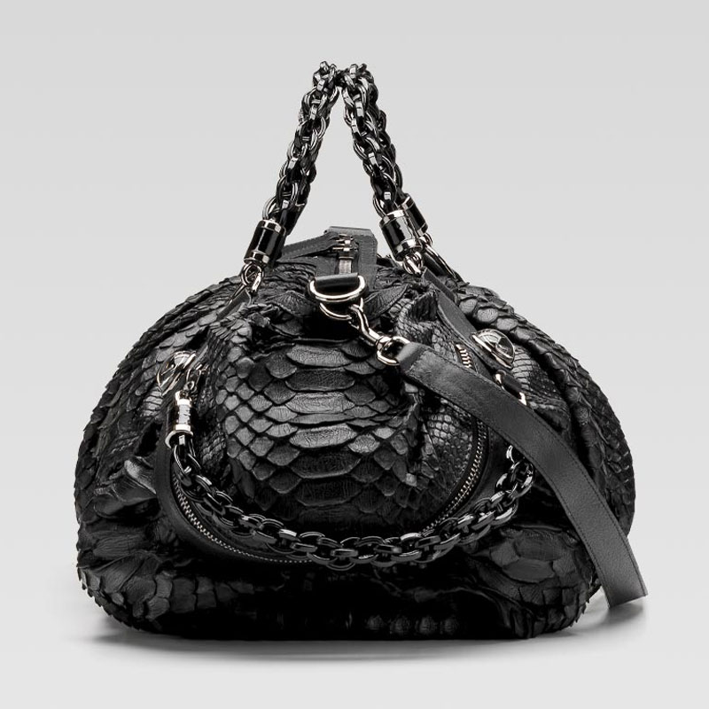 'galaxy' medium top handle bag with ruching, hand braided leather chains, and interlocking G detail.