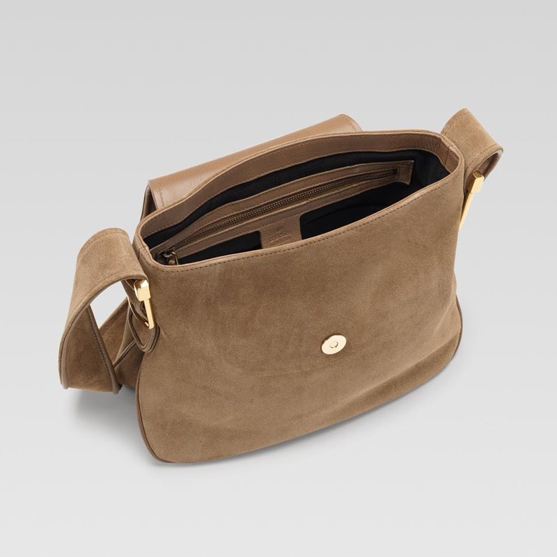- light brown suede with light brown leather trim