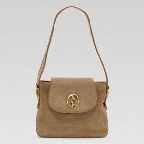 'gucci 1973' medium shoulder bag with oval GG and buckle ornaments.