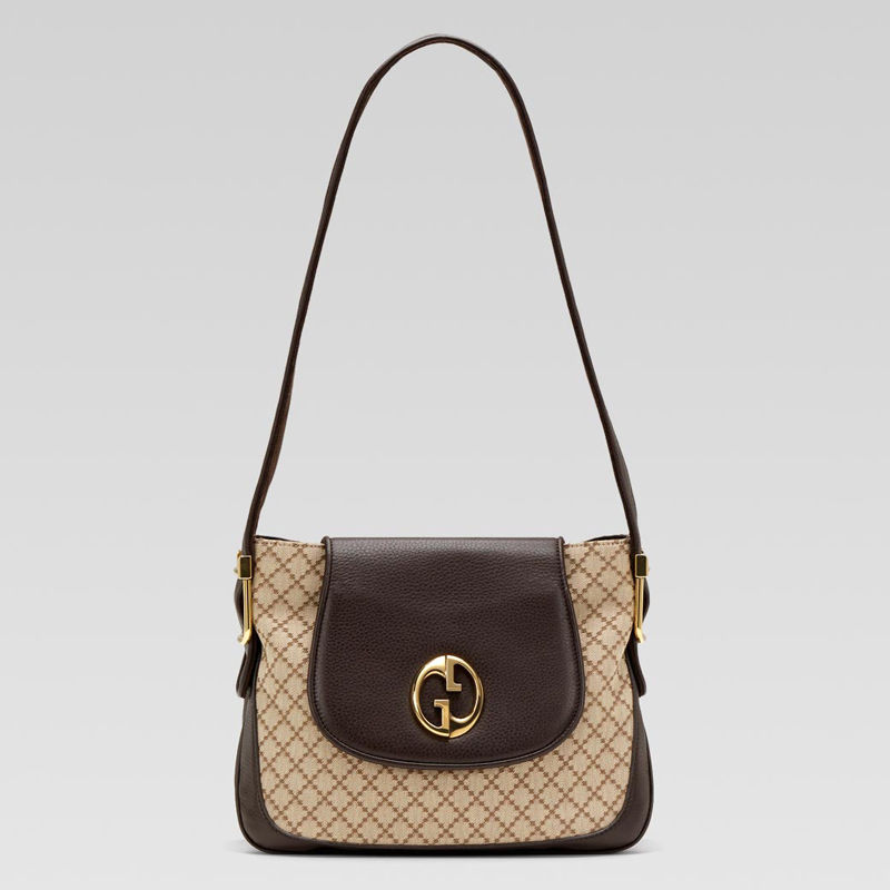 'gucci 1973' medium shoulder bag with oval GG and buckle ornaments.