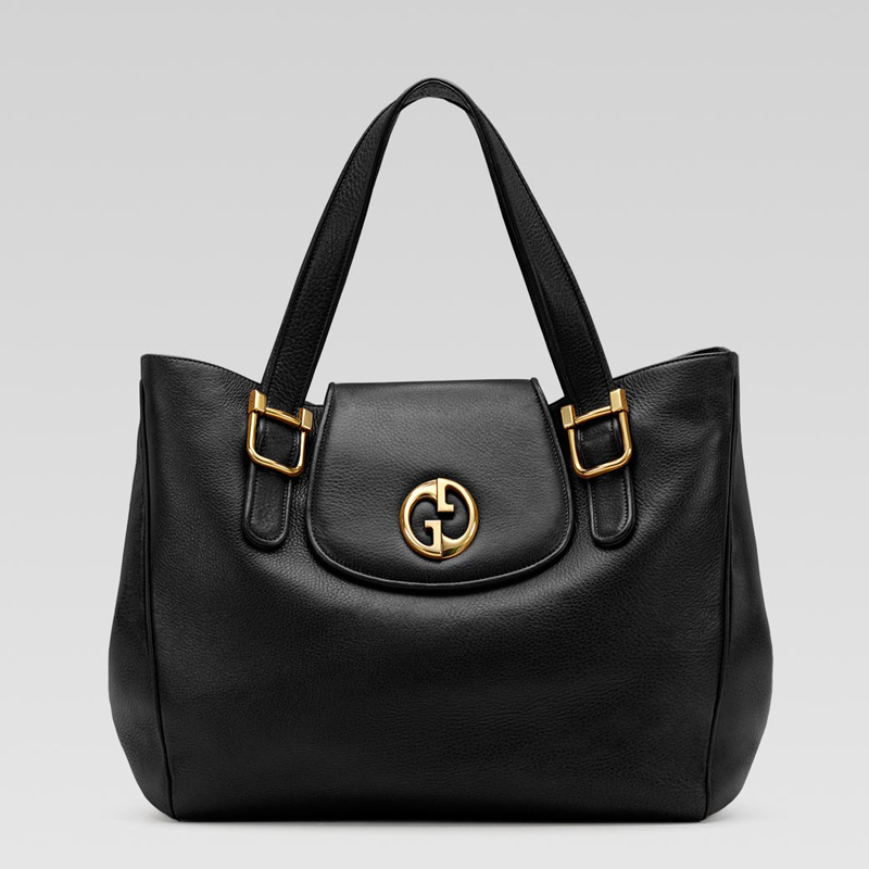 'gucci 1973' medium tote with oval GG and buckle ornaments.