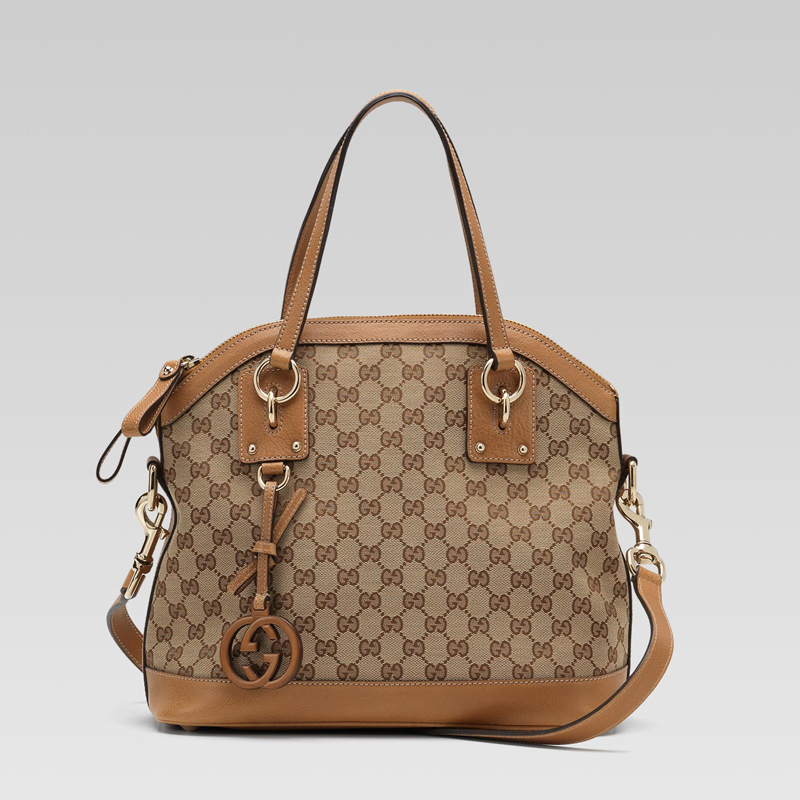 'gucci charm' medium top handle bag with leather interlocking G charm.