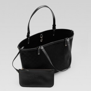 - black GG fabric with black leather trim
