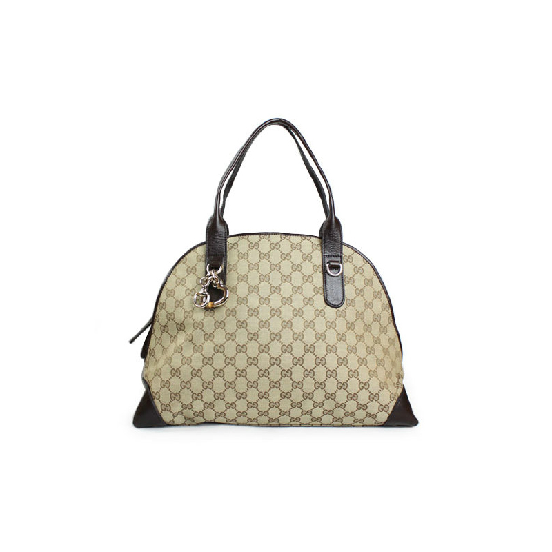 'heart bit' medium top handle bag with heart-shaped charm, bamboo detail, and half-horsebit.