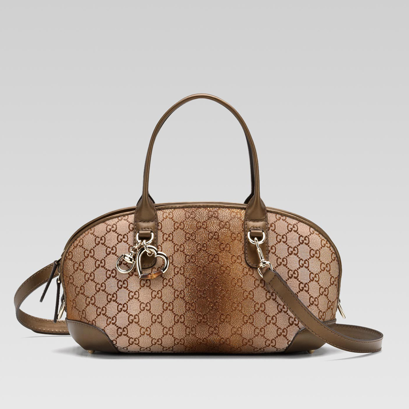 'heart bit' small top handle bag with heart-shaped charm, bamboo detail, and half-horsebit.