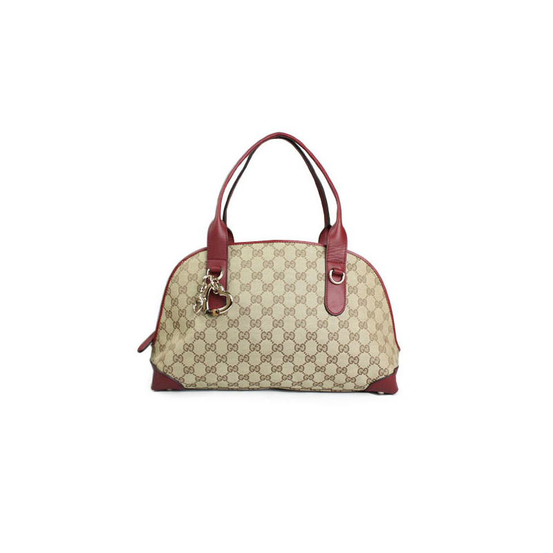 'heart bit' small top handle bag with heart-shaped charm, bamboo detail, and half-horsebit.