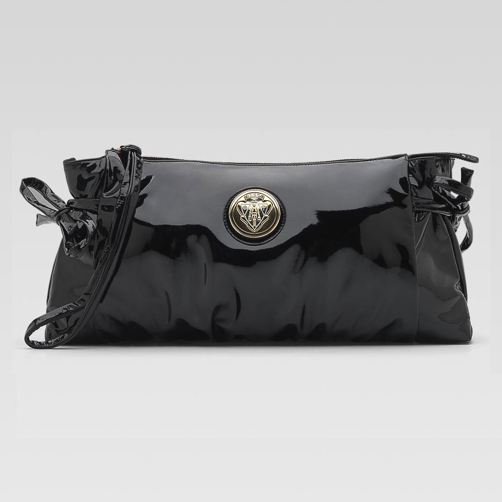 'hysteria' clutch with side ties and metal gucci crest detail.