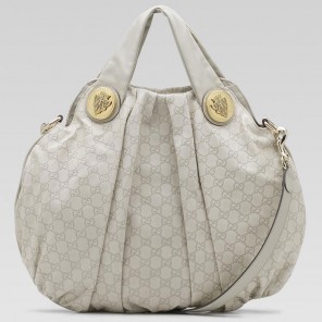 'hysteria' medium top handle bag with metal gucci crest detail.