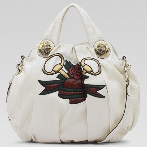 'hysteria' medium top handle bag with metal gucci crest detail.