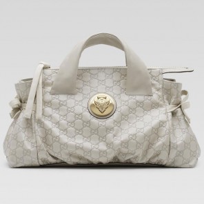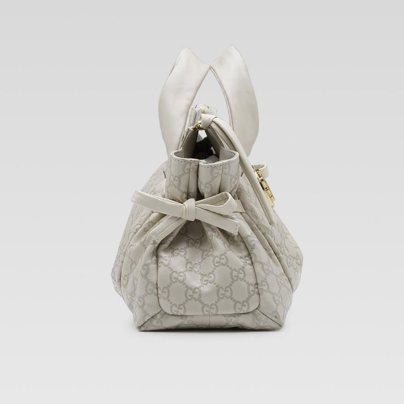 'hysteria' small top handle bag with side ties and metal gucci crest detail.