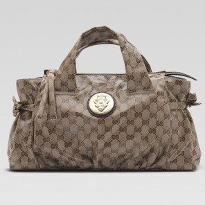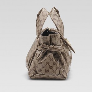 -beige/ebony crystal GG fabric with brown leather trim