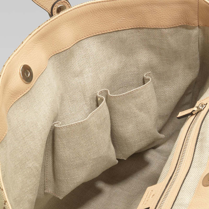 - beige/ebony GG fabric with sand leather trim