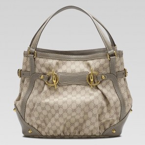 'jockey' medium tote with horsebit detail, embossed gucci script logo, and studs.