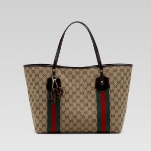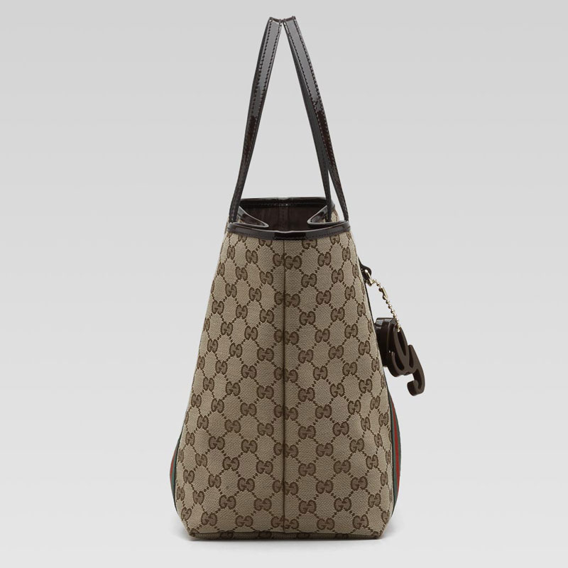 -beige/ebony GG fabric with green/red/green web and brown patent leather trim