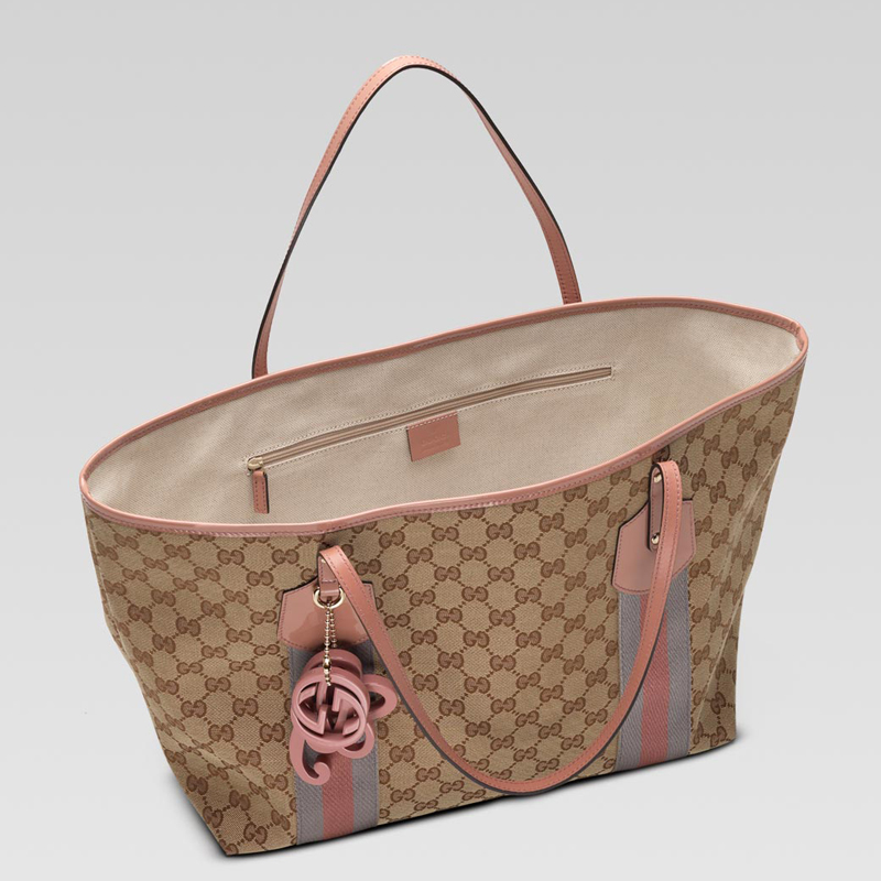 - beign/ebony GG fabric with grey/rose peony/grey web and rose peony paent leather trim