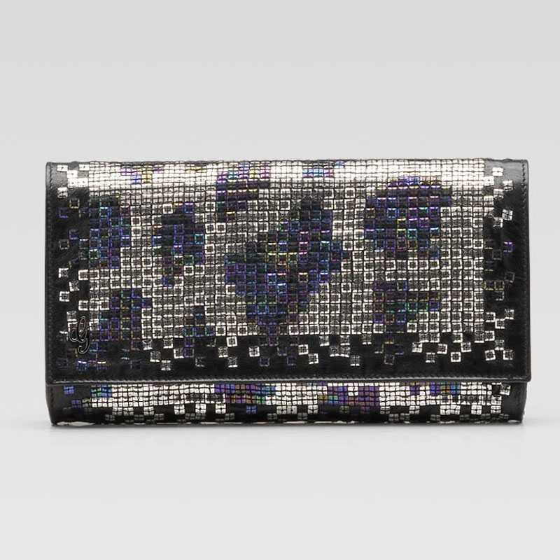 -black leather with multi-color embroidery-ruthenium hardware-magnetic snap closure-inside pocketProduct ID: 228832 BFG6R 8488