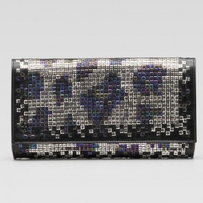-black leather with multi-color embroidery-ruthenium hardware-magnetic snap closure-inside pocket