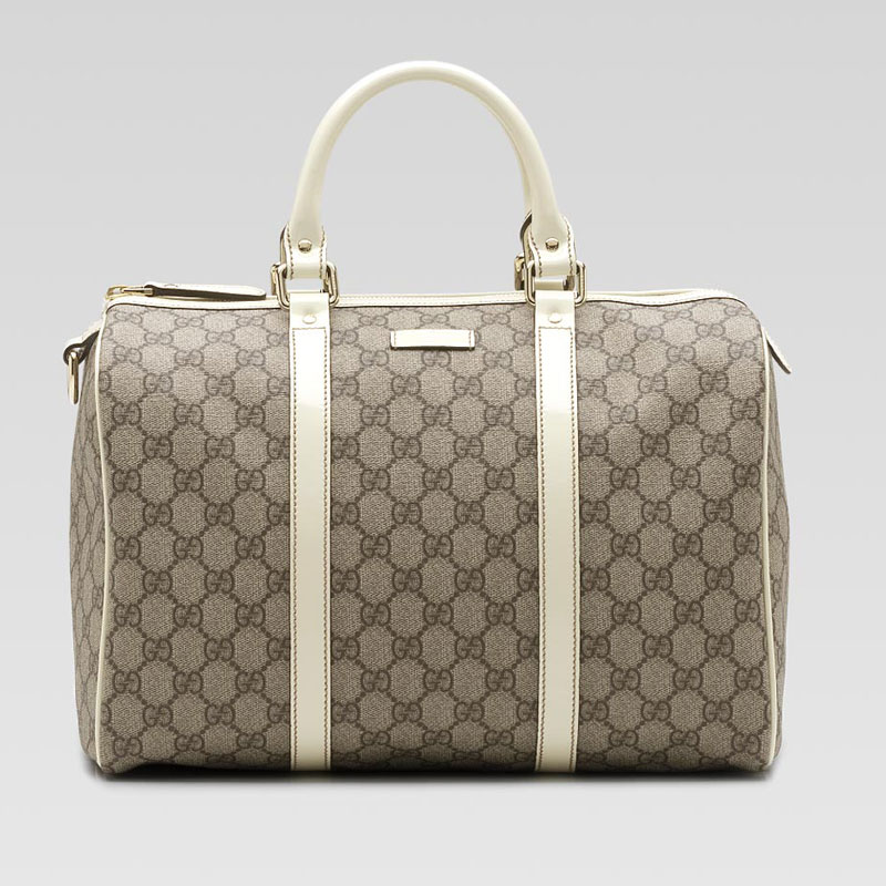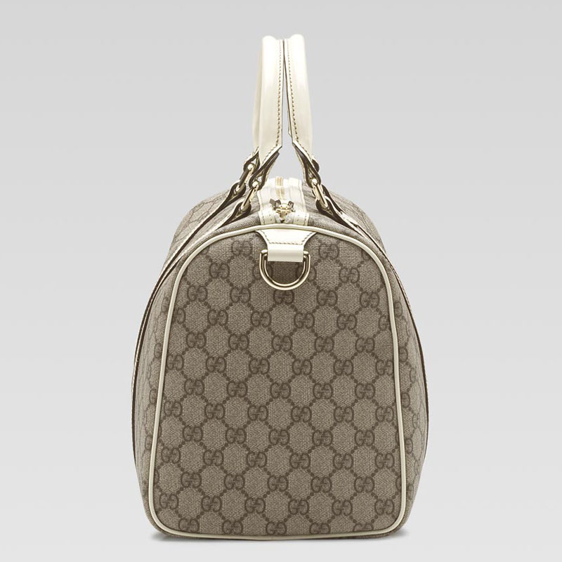 -beige/ebony GG plus with off-white leather trim-light gold hardware-double handles with 4.3" drop-zip-top closure-inside pocket