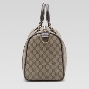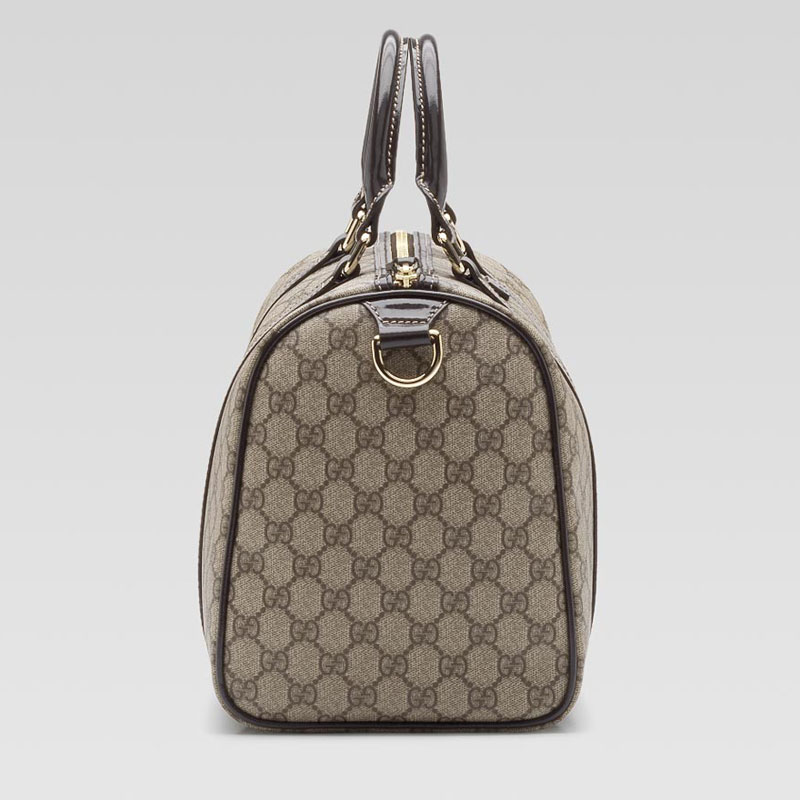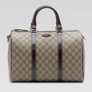 -beige/ebony GG plus with dark brown leather trim-light gold hardware-double handles with 4.3" drop-zip-top closure-inside pocket
