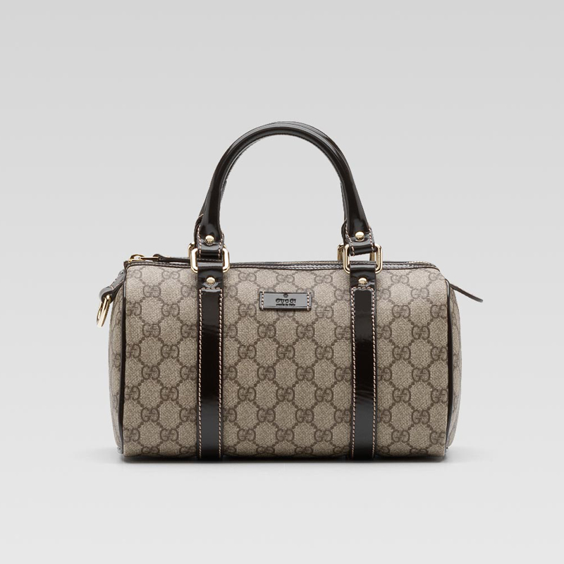 - beige/ebony GG plus with dark brown leather trim - light gold hardware - double handles with 9 cm drop - zip-top closure - inside pocket