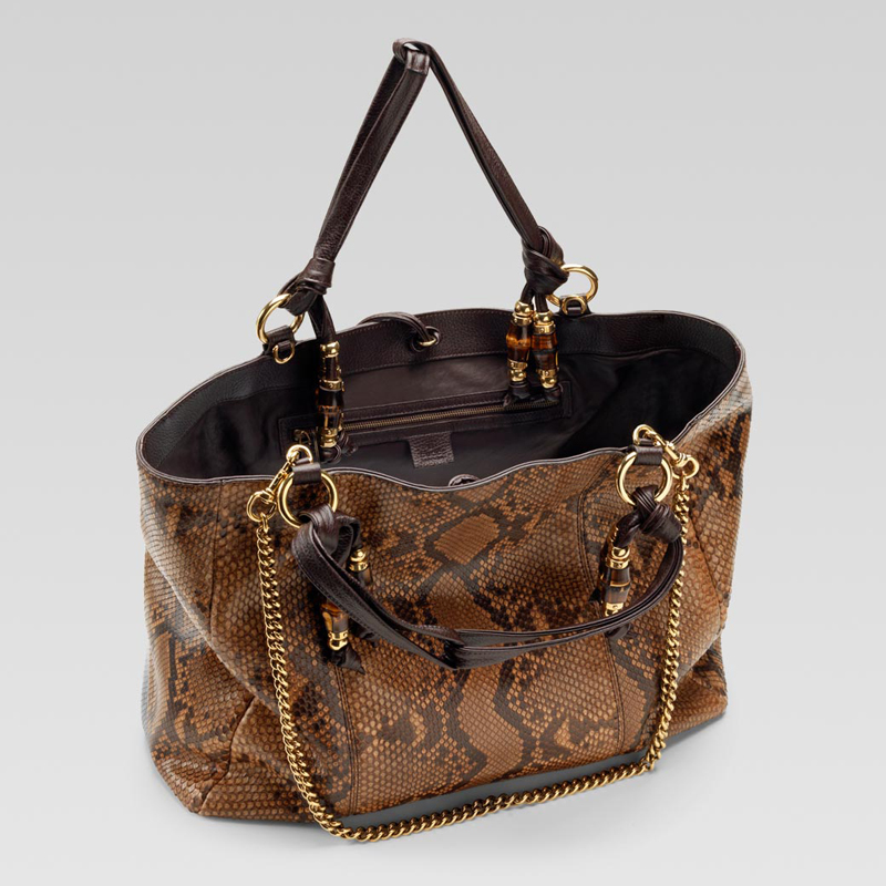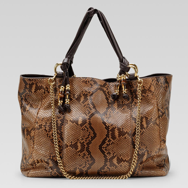 - camel shaded python with dark brown leather trim